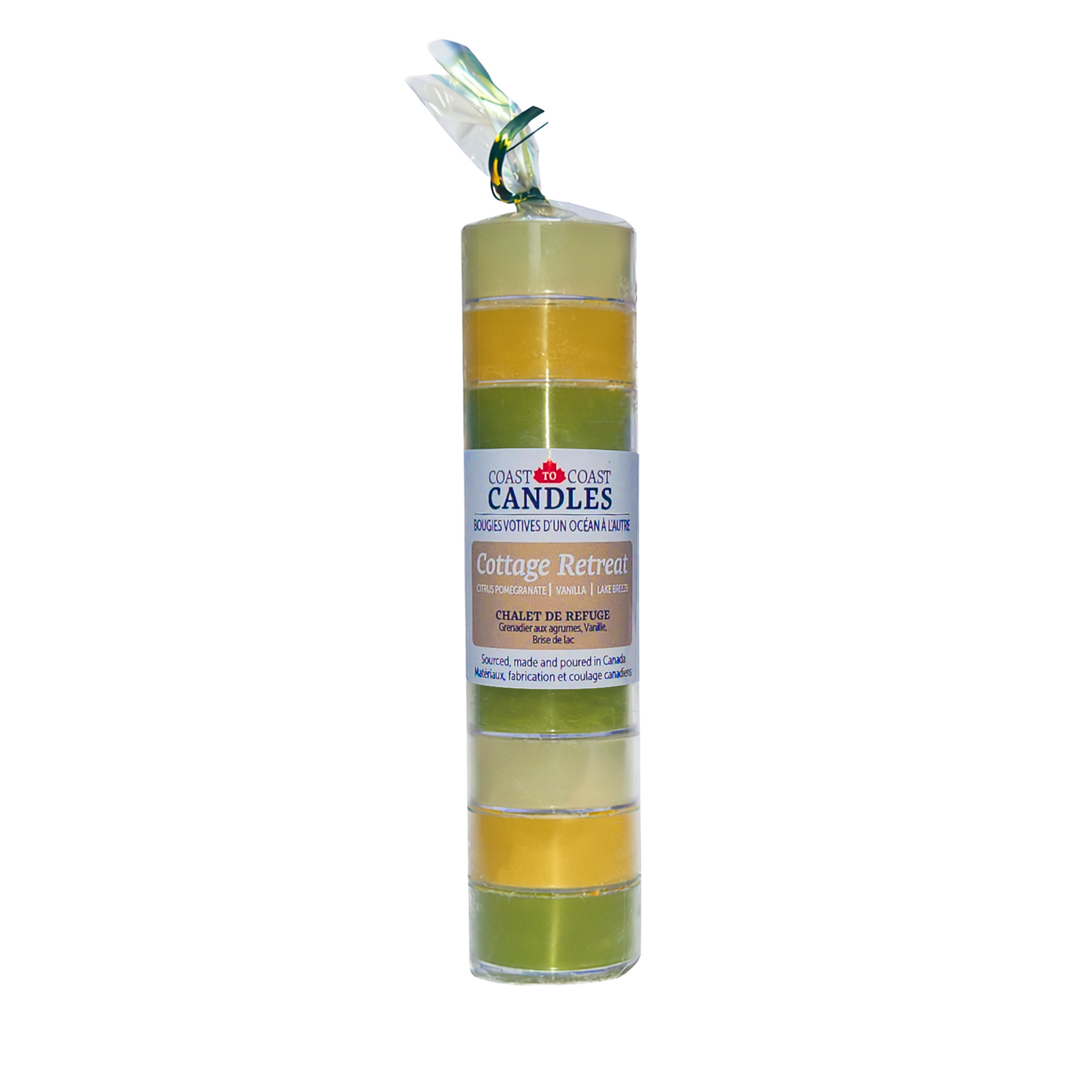 Nine all-natural tealight candles including three Coast to Coast scents: Buttered Maple Syrup, Apple Crisp, Cranberry.