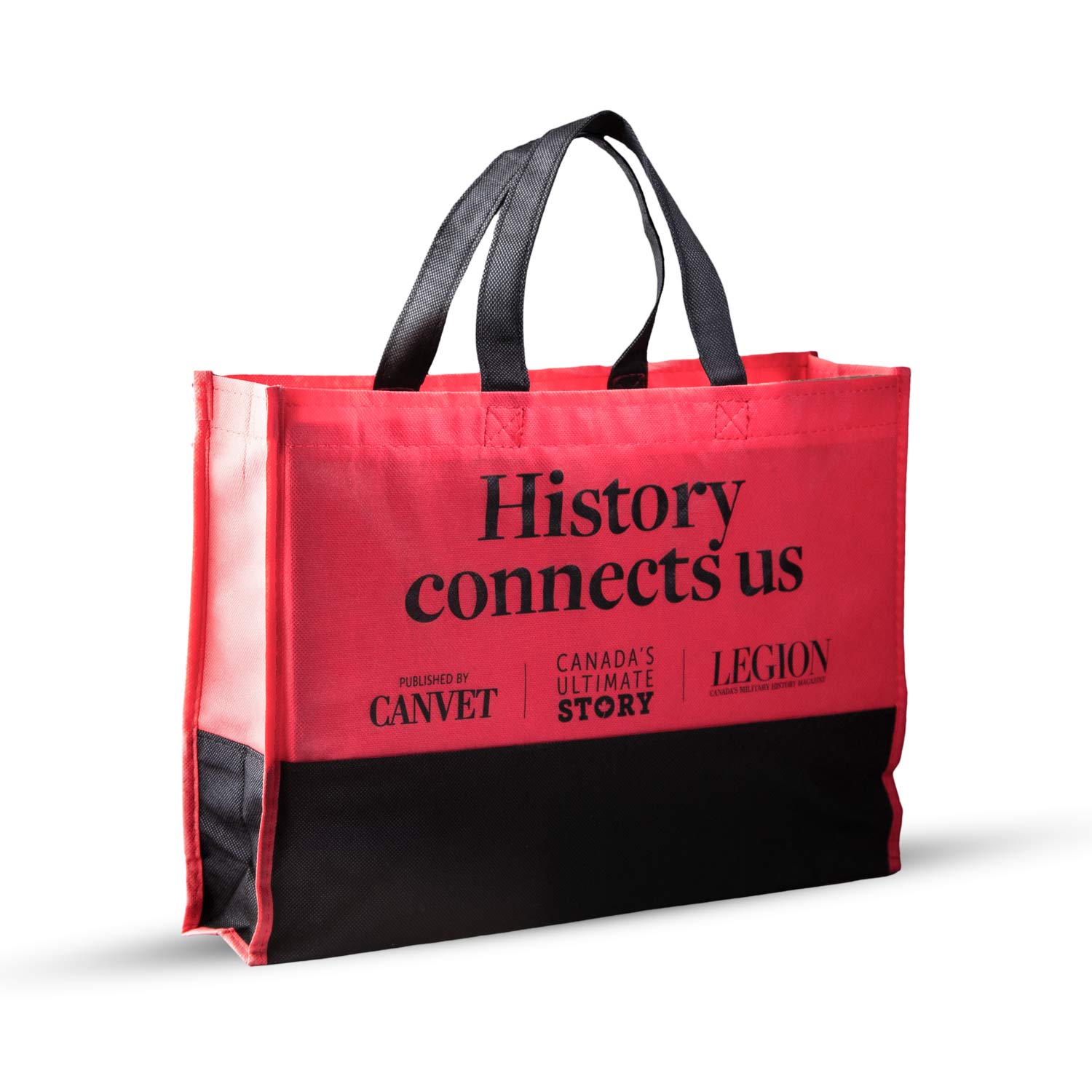 Show your love for Canadian history while easily toting your books and magazines with this limited-edition, non-woven tote bag. The 3“ gusset helps create a flat bottom for your stuff. Shop exclusive.